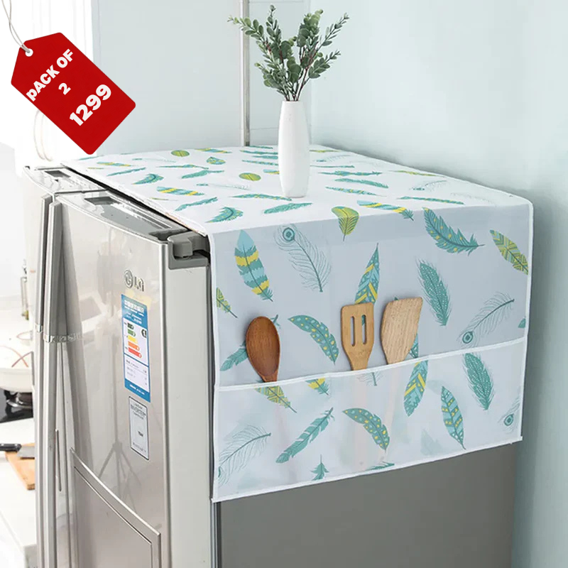 This combo includes a Fridge Top Cover + Oven/Microwave Cover – both designed with a cute kitchen-themed print and made from durable, waterproof material.